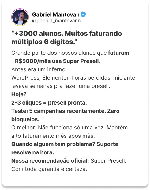 🎯 ¡Aumenta tus ventas! Nuestras páginas Presell están optimizadas y aprobadas por los Top Afiliados para ayudarte a convertir más y generar más comisiones. Fast Presell es compatible con las principales herramientas de tracking del mercado.